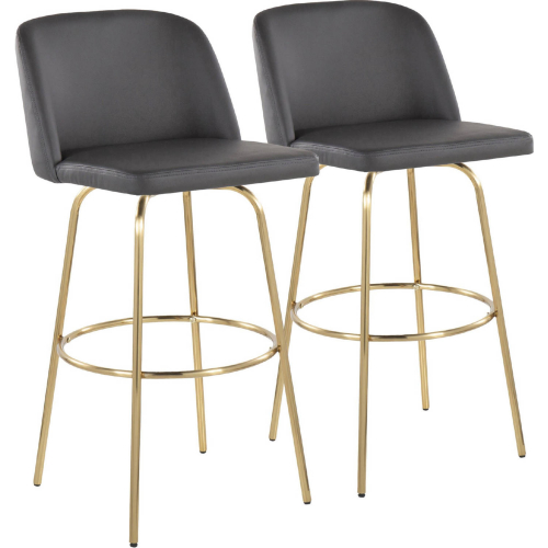Lumisource Toriano 30" Swivel Bar Stool in Grey Leatherette & Gold with Round Footrest (Set of 2)