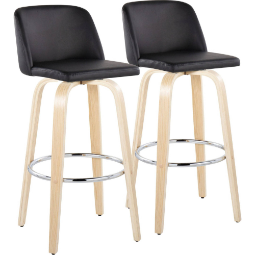 Lumisource B30-TRNOPU-GRTZR2 NABK2 Toriano 30" Swivel Bar Stool Natural Wood Black Leatherette Chrome Footrest (Set of 2)