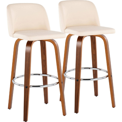 Lumisource B30-TRNOPU-GRTZR2 WLCR2 Toriano 30" Swivel Bar Stool Walnut Wood Cream Leatherette Chrome Footrest (Set of 2)