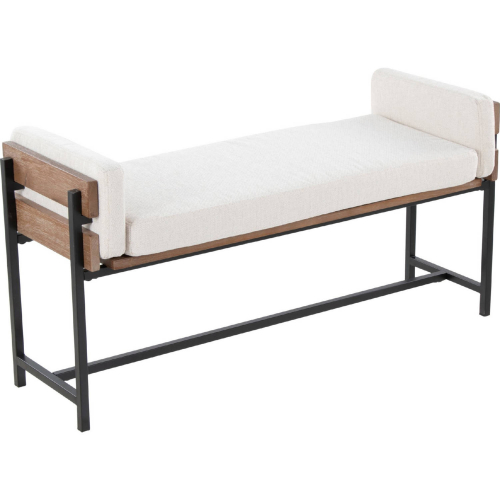 Lumisource Kari 18" Bench in Black Metal, Brown Wood & Cream Fabric