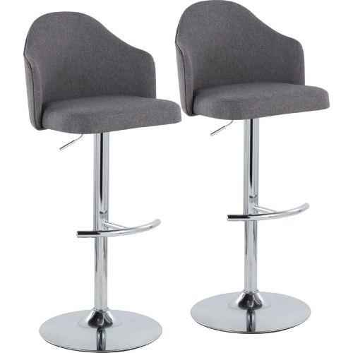 Lumisource BS-AHOYUPFB-RT2 CHRGY2 Ahoy Adjustable Swivel Bar Stool Chrome Grey Fabric (Set of 2)