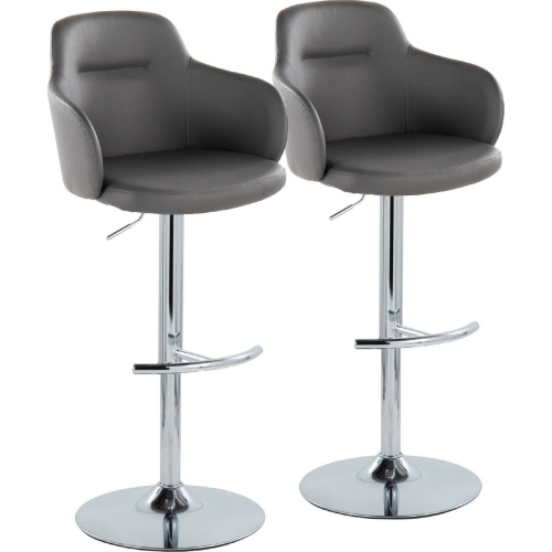 Lumisource Boyne Adjustable Swivel Bar Stool in Chrome & Grey Leatherette (Set of 2)