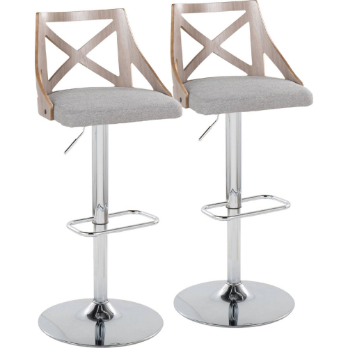 Lumisource Charlotte Adjustable Height Swivel Bar Stool in Chrome, Light Grey Wood, Grey Fabric (Set of 2)