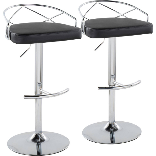Lumisource BS-CHARLOTGLAMPU-RNT2 CHRBK2 Charlotte Adjustable Swivel Bar Stool Chrome Black Leatherette (Set of 2)