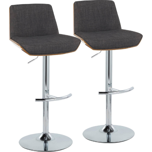 Lumisource Corazza Adjustable Swivel Bar Stool in Chrome, Walnut Wood & Charcoal Fabric (Set of 2)
