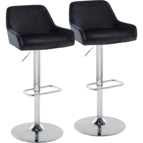 Lumisource BS-DNLAV-RR2 CHRBK2 Daniella Adjustable Swivel Bar Stool Chrome Black Velvet (Set of 2)