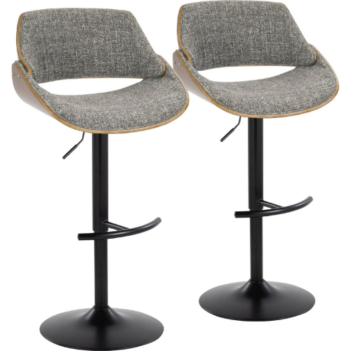 Lumisource BS-FBZZ-RT2 BKWLGY2 Fabrizzi Adjustable Bar Stool Walnut Wood Black Metal Noise Grey Fabric (Set of 2)
