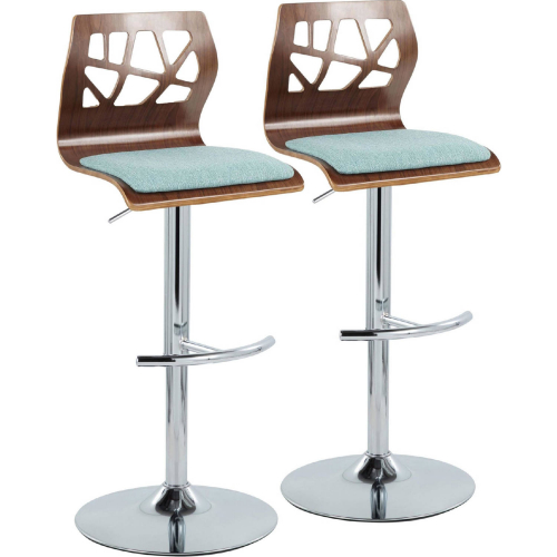 Lumisource BS-FOLIAFB-RT2 CHRWLTL2 Folia Adjustable Swivel Bar Stool Chrome Walnut Wood Teal Fabric (Set of 2)