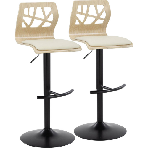 Lumisource BS-FOLIAPU-RT2 BKNACR2 Folia Adjustable Swivel Bar Stool Black Metal Natural Wood Cream Leatherette (Set of 2)