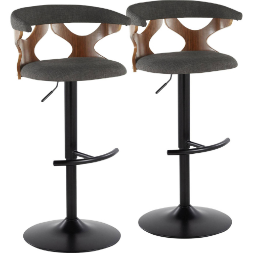 Lumisource BS-GARDFB-RT2 BKWLCHAR2 Gardenia Adjustable Swivel Bar Stool Black Metal Walnut Wood Charcoal Fabric (Set of 2)