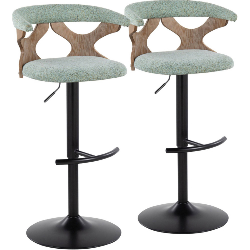 Lumisource BS-GARDFB-RT2 BKWWSGN2 Gardenia Adjustable Swivel Bar Stool White Washed Wood Black Fabric Green Fabric (Set of 2)