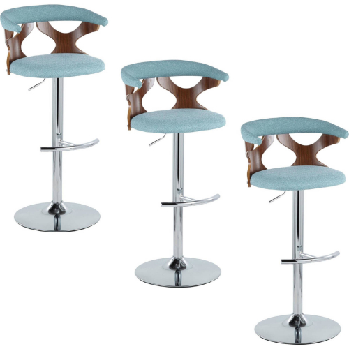 Lumisource BS-GARDFB-RT3 CHRWLTL3 Gardenia Adjustable Swivel Bar Stool Chrome Walnut Wood Teal Fabric (Set of 3)