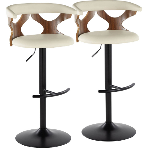 Lumisource BS-GARDPU-RT2 BKWLCR2 Gardenia Adjustable Swivel Bar Stool Walnut Wood Black Metal Cream Leatherette (Set of 2)