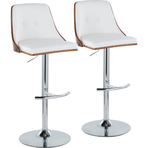 Lumisource BS-GNNPU-RT2 CHRWLW2 Gianna Adjustable Swivel Bar Stool Chrome Walnut Wood White Leatherette (Set of 2)