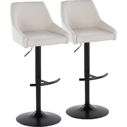 Lumisource Hannah Adjustable Swivel Bar Stool in Black Metal & Cream Fabric (Set of 2)