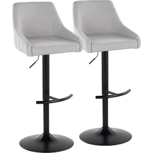 Lumisource BS-HANNAHFB-RT2 BKGY2 Hannah Adjustable Swivel Bar Stool Black Metal Grey Fabric (Set of 2)