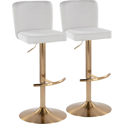 Lumisource BS-HENRYFB-RT2 AUW2 Henry Adjustable Swivel Bar Stool Gold White Fabric (Set of 2)