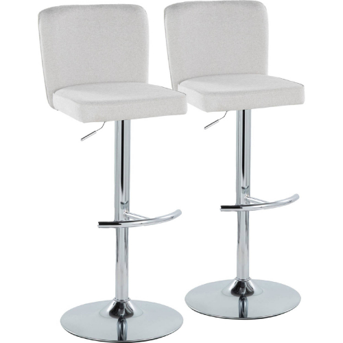 Lumisource BS-HENRYFB-RT2 CHRW2 Henry Adjustable Swivel Bar Stool Chrome White Fabric (Set of 2)