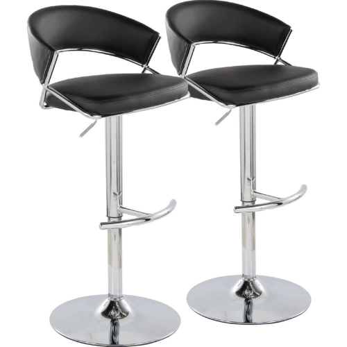 Lumisource BS-JIEPU-RT2 CHRCHRBK2 Jie Adjustable Swivel Bar Stool Chrome Black Leatherette (Set of 2)