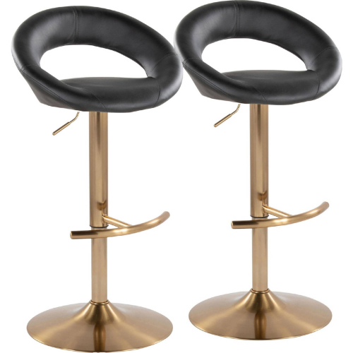 Lumisource BS-POSHPU-RT2 AUBK2 Posh Adjustable Swivel Bar Stool Gold Black Leatherette (Set of 2)