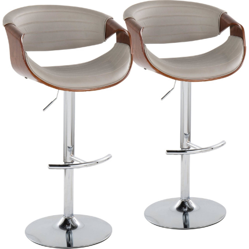 Lumisource BS-SYMPPU-RT2 CHRWLGY2 Symphony Adjustable Swivel Bar Stool Chrome Walnut Wood Grey Leatherette (Set of 2)