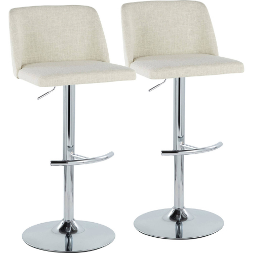 Lumisource Toriano Adjustable Swivel Bar Stool in Cream Fabric & Chrome (Set of 2)