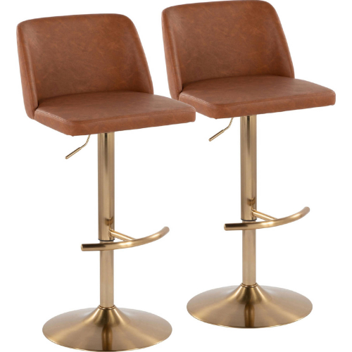 Lumisource BS-TRNOPU-RT2 AUCAM2 Toriano Adjustable Swivel Bar Stool Camel Leatherette Gold (Set of 2)