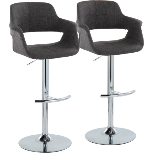 Lumisource BS-VFL-RNT2 CHRCHAR2 Vintage Flair Adjustable Swivel Bar Stool Chrome Charcoal Fabric (Set of 2)