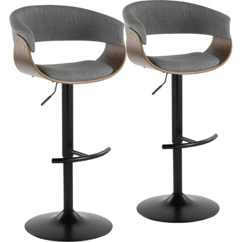 Lumisource BS-VMO-RT2 BKWLLGY2 Vintage Mod Adjustable Swivel Bar Stool Black Metal Walnut Wood Grey Fabric (Set of 2)