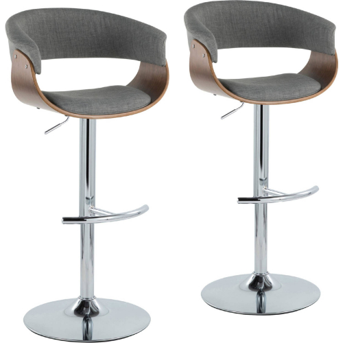 Lumisource BS-VMO-RT2 CHRWLGY2 Vintage Mod Adjustable Swivel Bar Stool Chrome Walnut Wood Light Grey Fabric (Set of 2)