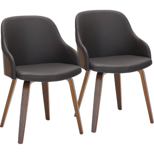 Lumisource Bacci Dining Accent Chair in Walnut Wood & Brown Leatherette (Set of 2)