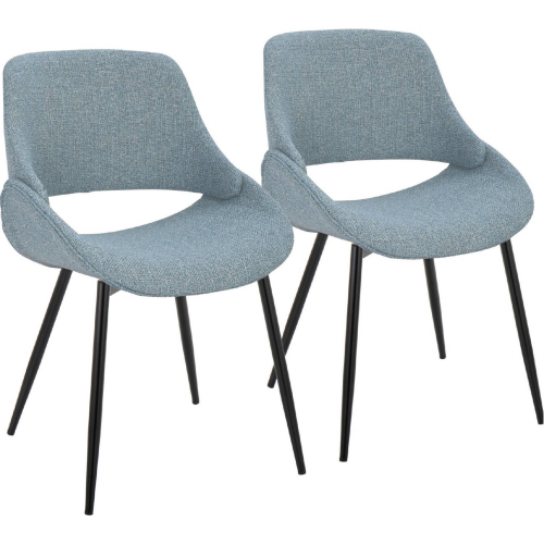 Lumisource Fabrico Dining Accent Chair in Black Metal & Blue Fabric (Set of 2)