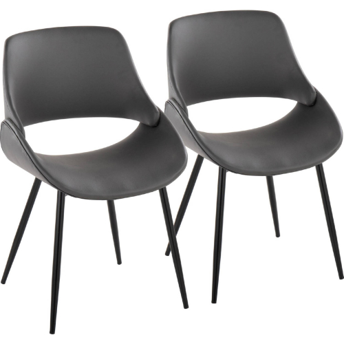 Lumisource Fabrico Dining Accent Chair in Black Metal & Grey Leatherette (Set of 2)