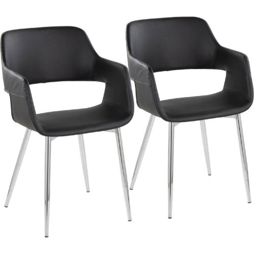 Lumisource Margarite Dining Accent Chair in Chrome & Black Leatherette (Set of 2)