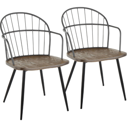 Lumisource CH-RILEYARM-HLC2 BKBNBK2 Riley Dining Accent Arm Chair Black Metal Dark Walnut Wood (Set of 2)