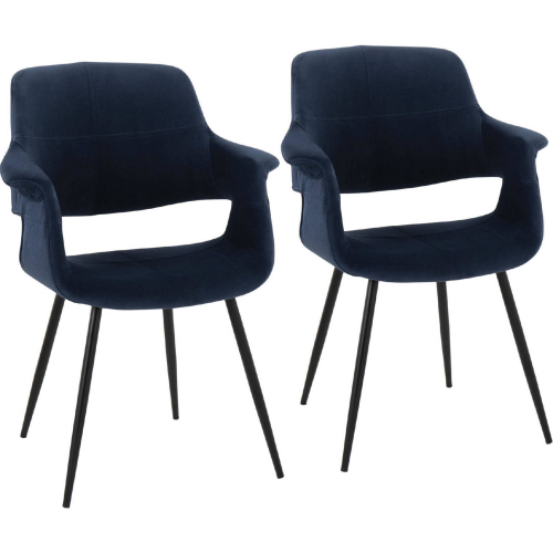 Lumisource CH-VFLV-MTPR1 BKBU2 Vintage Flair Dining Accent Chair Black Metal Blue Velvet (Set of 2)