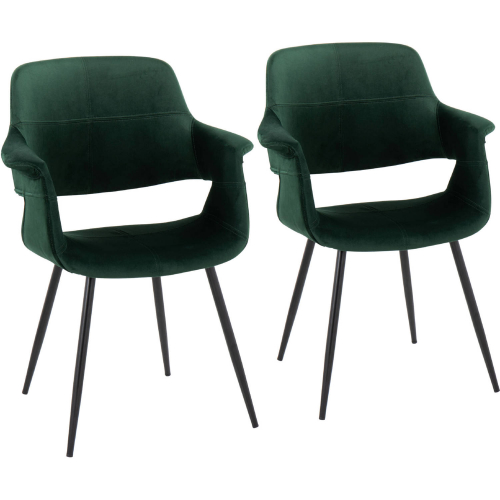 Lumisource CH-VFLV-MTPR1 BKGN2 Vintage Flair Dining Accent Chair Black Metal Green Velvet (Set of 2)