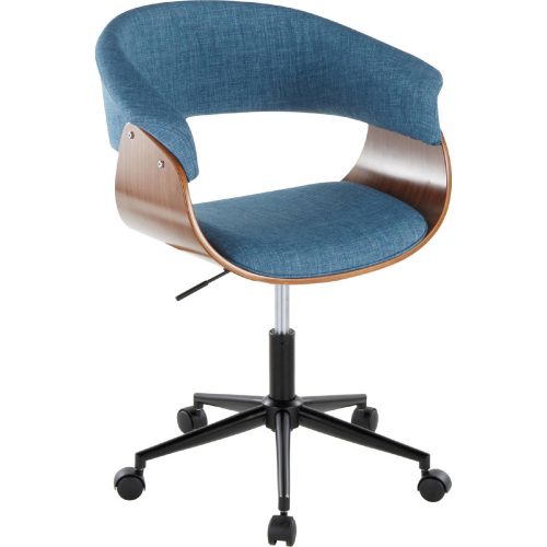 Lumisource OC-VMOFB1 BKWLBU1 Vintage Mod Office Chair Black Metal Walnut Wood Blue Fabric