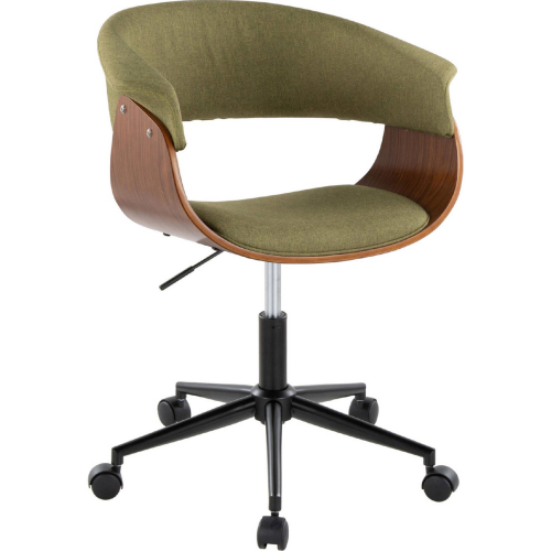Lumisource OC-VMOFB1 BKWLGN1 Vintage Mod Office Chair Black Metal Walnut Wood Green Fabric