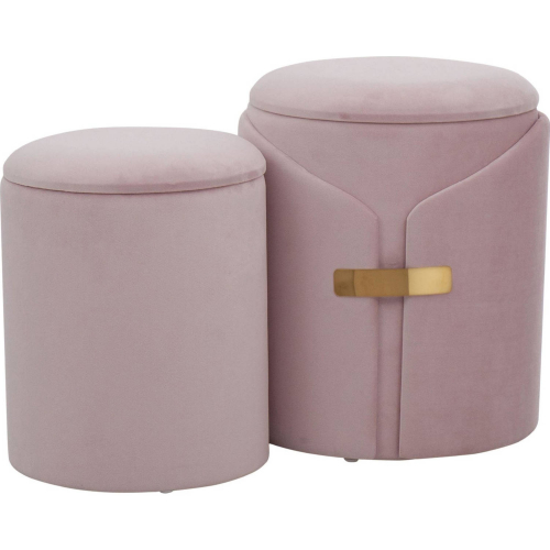Lumisource OT2-DAHLIA AUVPK Dahlia Nesting Ottoman Set Blush Pink Velvet Gold Accents