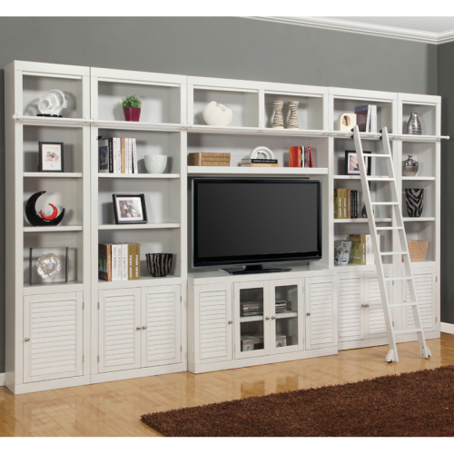 Parker House Boca Library Inset Entertainment Wall with Ladder - 6 Piece in Cottage White
