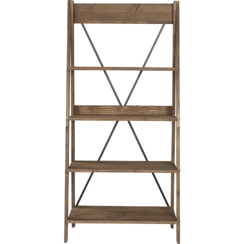 Walker Edison BS68FRSWBR 68" Solid Wood Ladder Bookcase Brown