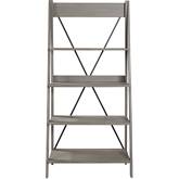 Walker Edison 68" Solid Wood Ladder Bookcase in Brown