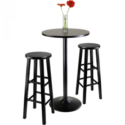 Winsome 20331 3 Piece Round Pub Table Two 29" Wood Stools Square Legs Black