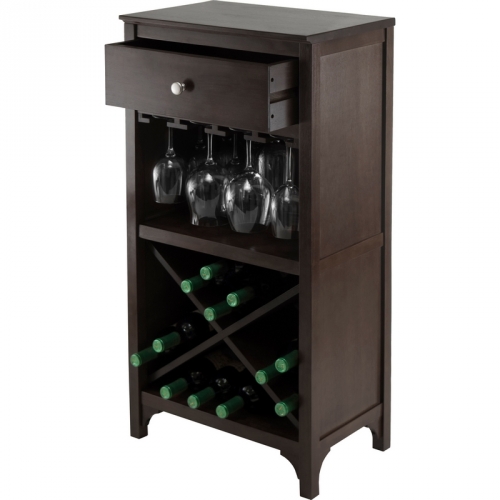 Winsome 92745 Ancona Modular Wine Cabinet One Drawer Glass Rack X Shelf Dark Espresso