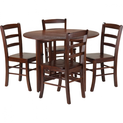 Winsome Alamo 5 Piece Round Drop Leaf Table with 4 Ladder Back in Walnut