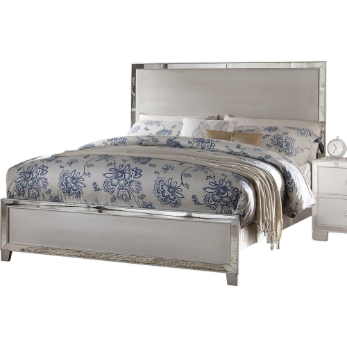Acme Furniture 24840Q Voeville II Queen Bed Platinum w/ Mirror Trim Inlay
