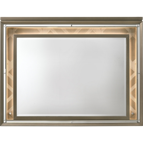 Acme Furniture Skylar Mirror with LED in Dark Champagne Finish Wood