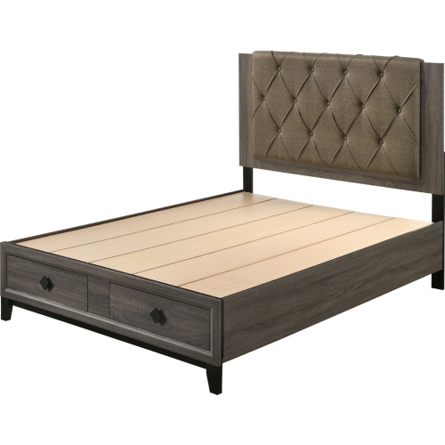 Acme Furniture Avantika King Storage Bed in Rustic Gray Oak & Tufted Fabric