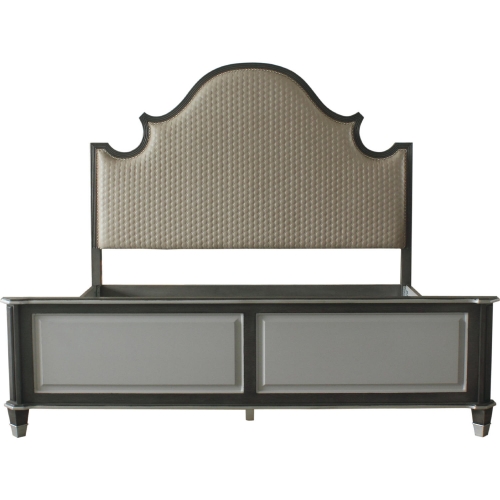 Acme Furniture House Beatrice Queen Bed in Beige Fabric, Charcoal Gray & Light Gray